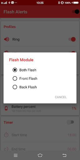 ✔ You can turn on or off the flash mode for calls, text messages in the time frame you want.
