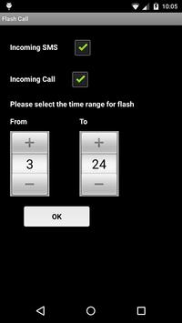 Features are : - Enable/disable flash for incoming call and SMS. - Provision are made for the user to set the time range for flash.