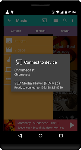 With Flash Cast you can send videos, music and photos to any Smart TV, Chromecast ™ and also to your computer VLC ™!