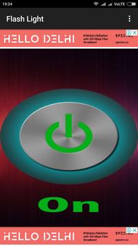 Flash Light use from mobile and enjoy light regular.There are following option :- 1. Start Off to On Flash Light. 2. Start On to Off Flash Light. Thanks