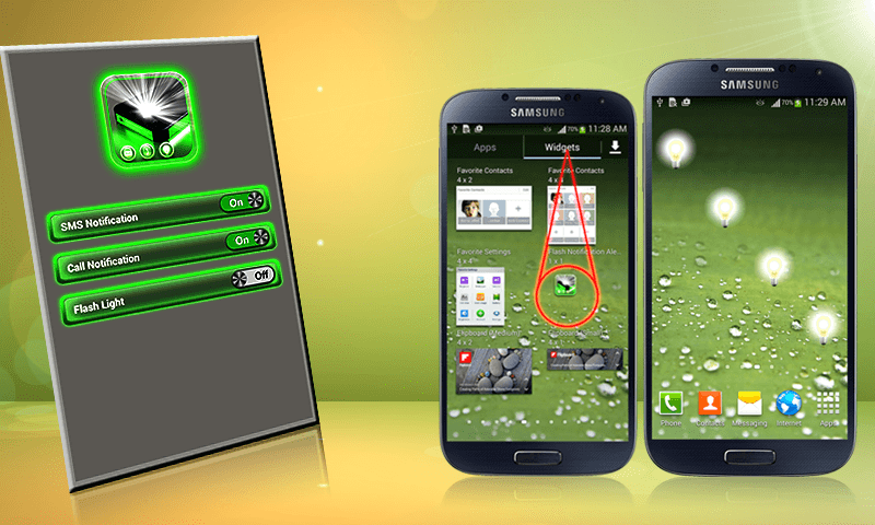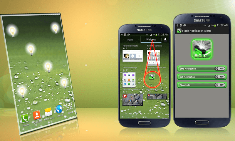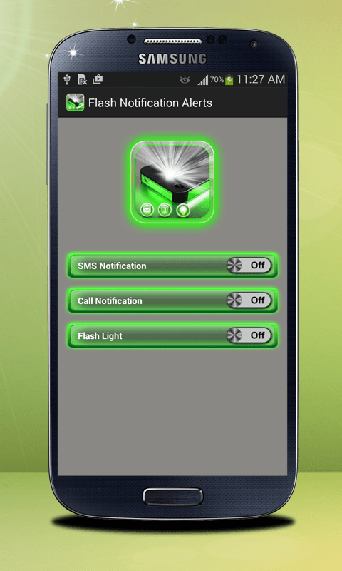 Flash Light Alert Notification a simple application which will use your camera flash to make light blinking signals while device is ringing or new message is received. The user also has the ability to enable or disable flashing on each of the native Normal, Vibrate and Silent modes.