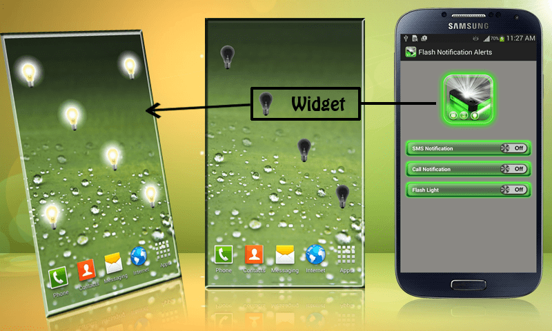 Flash Light Alert Notification application reminds you of a incoming call, message (SMS) and notifications with the blink of light with the use of camera Flash Light. Flash Light Alert Notification Application mostly use when your phone in Silent Mode or you are not hear your incoming calls, SMS and notifications ring tone.