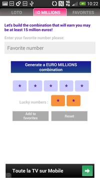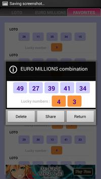 This application allows to generate EURO MILLIONS Lottery combinations in an ingenious way, this based on your lucky number, and other random data.