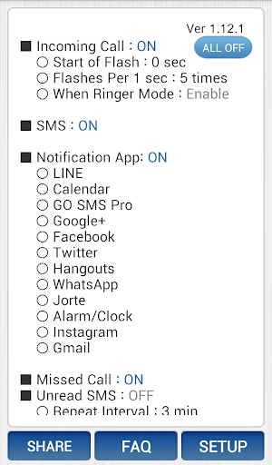 1) Add a message (SMS) app to the notification app to enable SMS flash.
