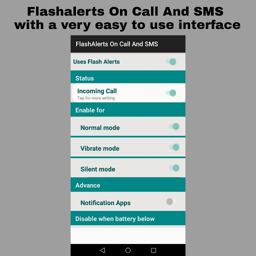 is a tool that is free for all users. Whether it has been dark, meeting or normal situation where the ringtone can irritate you, the Multicolor Flash on Call & SMS:Brightest Torch LED Flashlight application will be available freely for all and will diminished your irritation. The color Flash on Call & SMS:Brightest Torch LED Flashlight will help you regarding notifications of SMS or on receiving phone call via Brightest Torch LED Flashlight or multi-color Flash Light. So Flash on Call & SMS:Brightest Torch LED Flashlight alerts you via its Brightest Torch LED multi-color Flashlight every time on receiving SMS or Call.