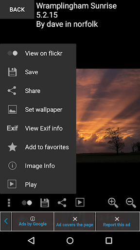 You can view fullscreen, save picture, play slideshow, or set them as wallpapers (with special supports for non-scrollable wallpapers).