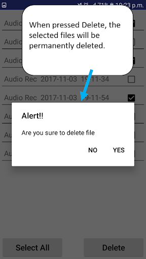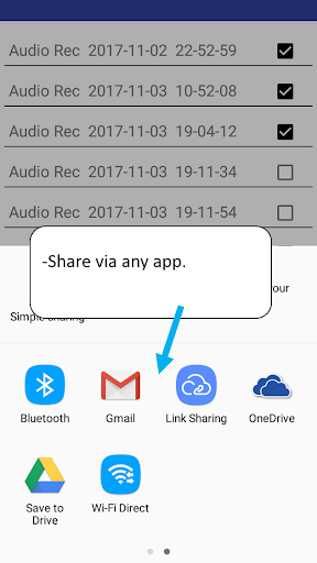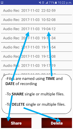 Standard Audio Recording and Playback Capabilities including audio file delete and share function.