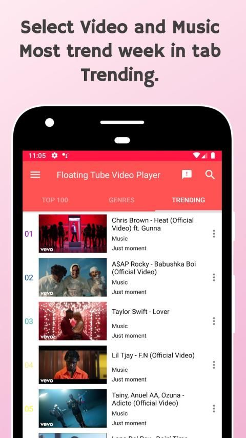 1. Choose a video live or a playlist music to play + Float Tube Video (Multitask).