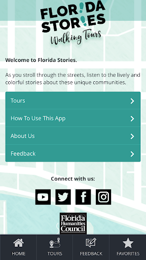 Florida Stories' walking tours allow you to delve behind the scenes of your favorite Florida towns to learn more about their history, culture, and architecture. You can discover the uniqueness of Florida at your own pace and on your own schedule. Each walking tour is GPS enabled and includes audio narration and photos providing you with engaging content at each tour stop.
