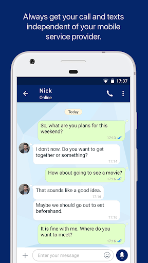Flow is a Voice & Chat messenger similar to Whatsapp, Viber and others. What makes Flow unique is that also your generic mobile phone voice calls and texts also come to Flow. Yes, you do not need to be connected to your home network service in order to receive your calls and texts. As long as your phone is connected to the internet, you are reachable on your home network number. This includes while using another SIM card or on a WiFi data connection.
