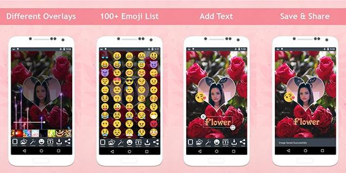 Flower photo frame with a friendly interface, simple design, easy to use, with just a few simple steps as choose frame, select photo, rotate, zoom in, zoom out, move, effects, emoji, sticker, save and share it,