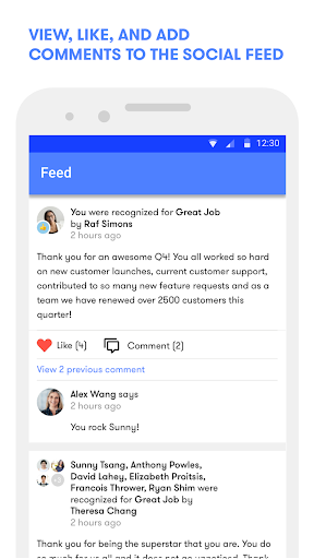 ● Easily and quickly recognize your peers for their hard work on-the-go