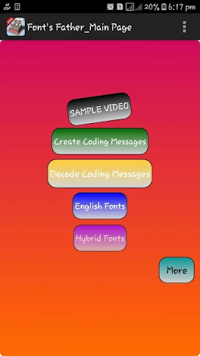 Font's Father is one of the best Application in History(For Fonts).you can create free imoji fonts for whatsapp,you can create messages of big fonts in Font's Father,you can create free stylish fonts for whatsapp,you can create free awesome fonts for whatsapp,you can create Simple & Hard coding messages in Font's Father,you can Decode simple