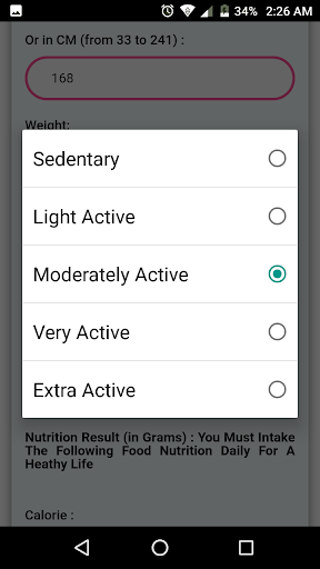 🔵 Activeness (Sedentary, Light Active, Moderately Active, Very Active, Extra Active)