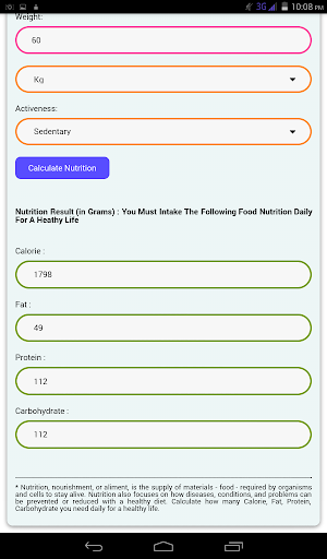 that your body require for a day to lead a healthy body and life. Simply enter your