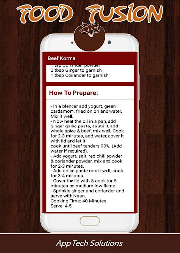 App offers tasty and delicious dishes of Fish Molee, Chicken Samosa, Mutton Korma, Malabar Fish Biryani, Nihari Gosht in a very simple way with pictures and short description