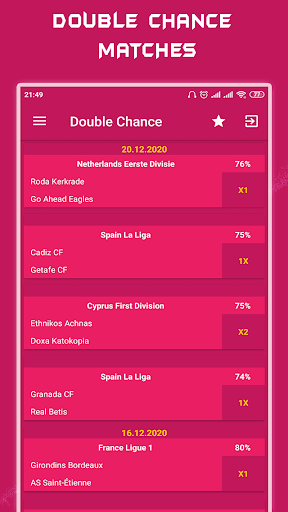 Our application football predictions tips have a daily accumulator tips for the most important markets and leagues for top European competitions including Serie A, La Liga, The Championship, Bundesliga, Ligue 1, Eredivisie, Portugal Primera, German Bundesliga and Scottish Premier League also we cover all cup games including Champions League,Europa League ,FA Cup, Copa Del Rey and Coupe De France.