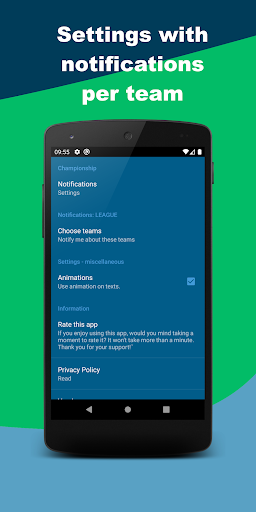 Fast Live Score push-notifications. Settings lets you turn on and off notifications.