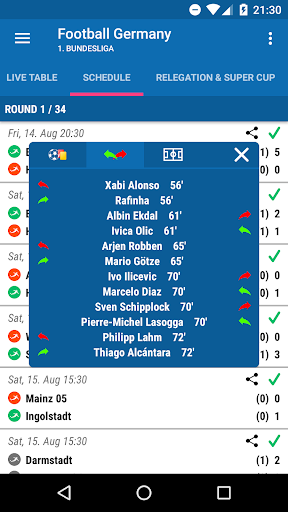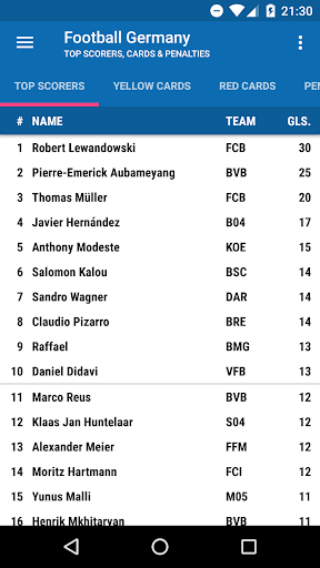 In the app you will find: 1. Bundesliga, 2. Bundesliga, 3. Liga, Champions League, Europa League and DFB Pokal (German Cup) ... and more...