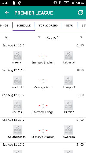 - Fixtures with live update: list of matches are grouped by team and round. The time is converted to the current device time zone, so there is no need for time calculations.
