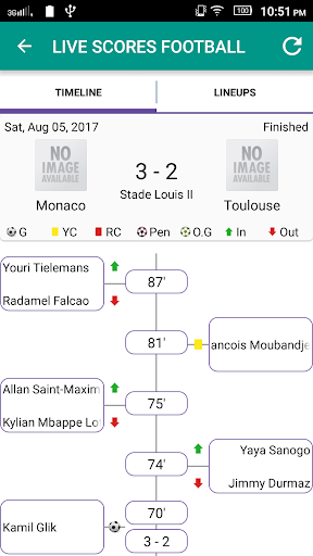 - Get match details with live events updated automatically: goals, yellow/red card, substitutions, penalty etc.