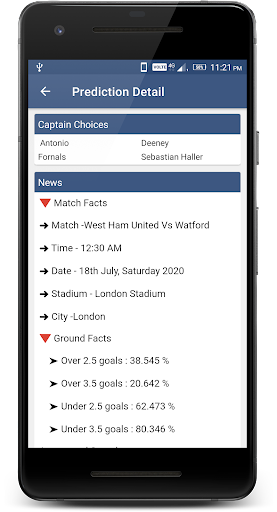 NOTE: This application just provides information that helps users to create the best playing teams. We do not take responsibility for anyone to win the matches after all it's your luck also to win the matches.