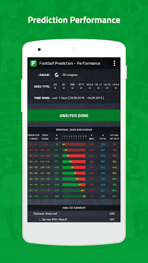We don't need to give you false promises about how good is app, at any time you can check all previous predictions and their efficiency in reviews organized by leagues, odds type and time period.