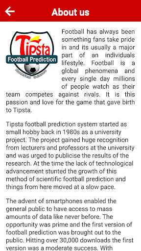 system. Tipsta provides you with quality football prediction tips in a simple worded text and in numerical form.
