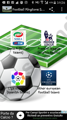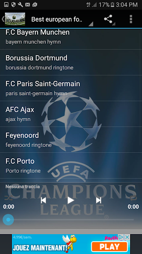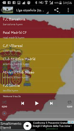 Italian football teams anthems, English football teams anthems, Spanish football teams anthems plus many others european football teams songs ready to use as ringtones, alarms for all android phones and tablet.