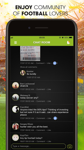 4. SHARE YOUR FOOTBALL PREDICTIONS: share and discuss with the community of football lovers about your insight and football prediction via chatroom.