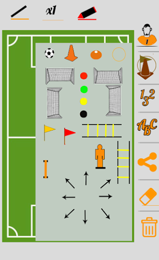 is an application that allows you to design plays with colored lines, set up training circuits with different obstacles, set up training matches with up to 4 different teams and above all you can share it via WhatsApp, email, Facebook ... With all the members of your team in a very simple and fast way.