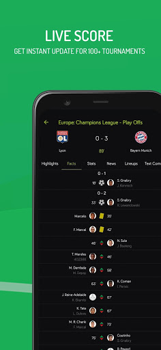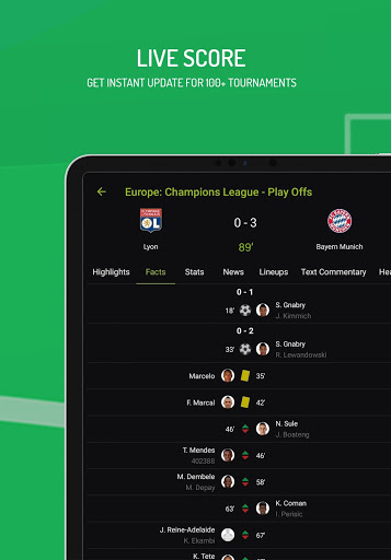 - Live scores: Including Facts, Match Stats, Commentary, Lineups, Results and Fixtures.