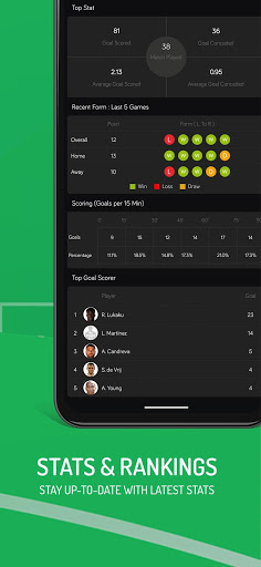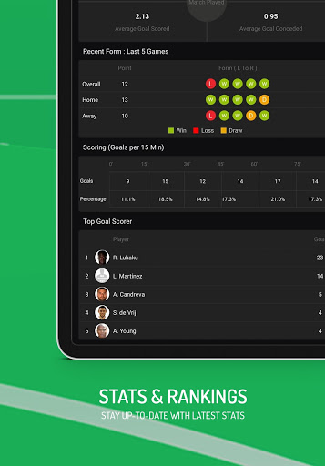 - Statistics: Including Standings, Head to Head, Top Scorers, Top Assists and Cards.