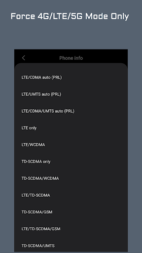 Force 4G LTE 5G Only is a app will help you change network to 5G/4G/3G/2G and stay in chosen network. This app will prevent your phone from auto switching network mode.