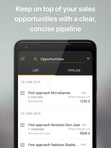 - It’s a mobile CRM app meaning you carry your pipeline with you. Manage your sales opportunities and check the stage your sales are at.