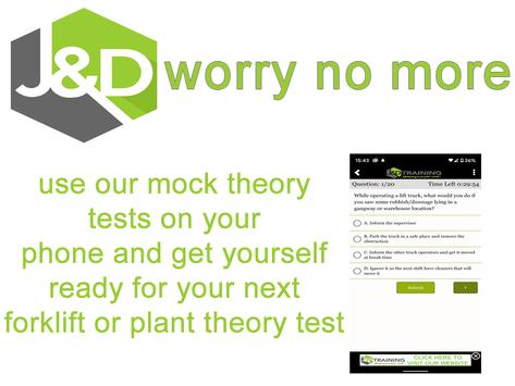 Get to know the Forklift training services that J & D Training Ltd have to offer. See our latest special offers and even practice the counterbalance forklift mock theory test all in one app. download now