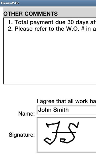 - Forms can contain Signature panels, so you will capture customers signature directly on mobile device;