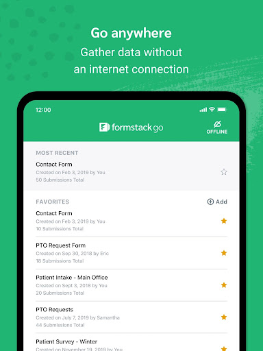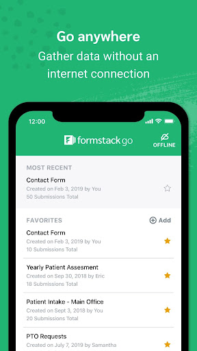 Formstack Go makes it easier than ever to collect the data you need, no matter where you are–even if you're offline. Access your forms and surveys on the go, and easily collect submissions from the comfort of your mobile phone or tablet. When you reconnect to the web, your device will sync with your account so you can quickly access all your data and trigger third-party integrations like Salesforce, HubSpot, and Dropbox.