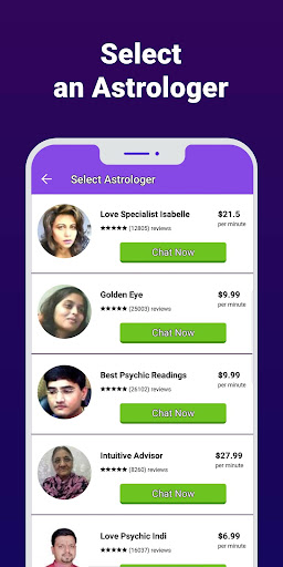 Review all psychics, choose your favorite Fortune Teller and start a conversation with him/her. The first 3 minutes are free!