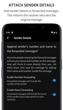 The app allows you to forward incoming SMS messages to any number in the world. You have the option to forward all the messages or some of them as per your needs. You can forward messages to multiple numbers also.
