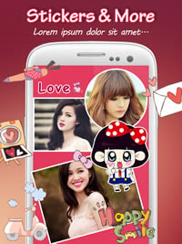 * Add text, delete text, emoticons and clip art, many sticker to your photos and collages