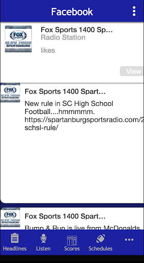 Fox Sports 1400 broadcasts local and national sports talk programming daily on 98.3FM and 1400AM throughout upstate South Carolina. Listen live, check updated high school scores and schedules, get the latest headlines and interact with station personalities through our official app. Spartanburg's Sports are on Fox Sports 1400.