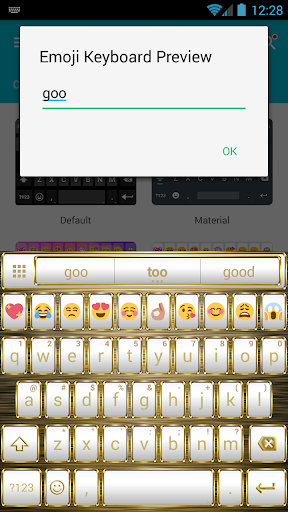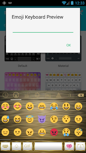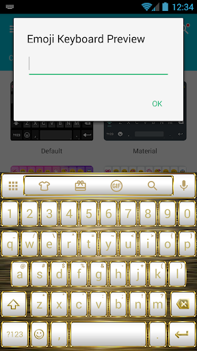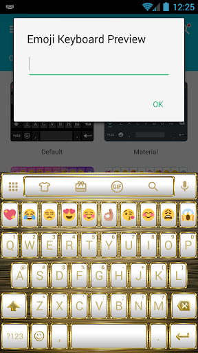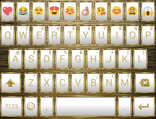 This is a theme with white pastel buttons adorned by a shiny metal frame of gold for Emoji Keyboard (Cute or GIF version) application: please install Emoji Keyboard main program to use this theme.