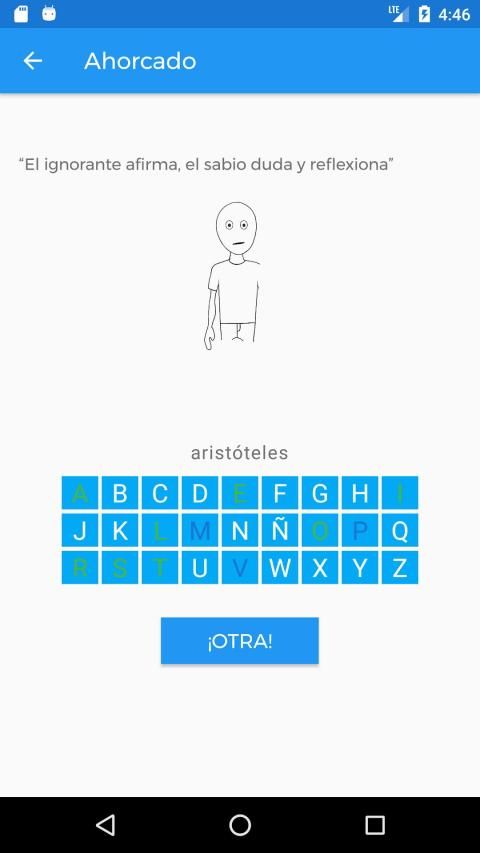 A su vez agregamos un ahorcado en el cual te damos la cita en la cual tienés que adivinar su autor! Podes jugar y así mejoras tus conocimientos mientras te divertís! Aprende palabras de la manera más divertida!