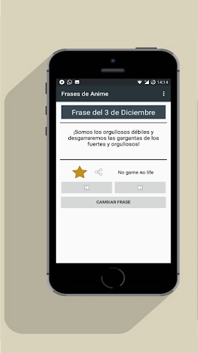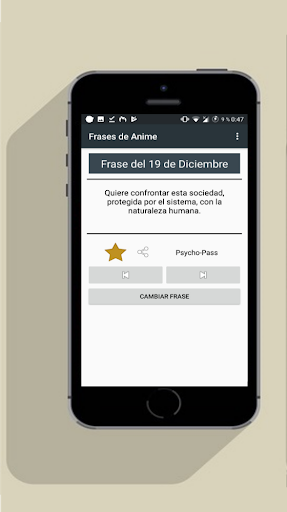 Frases de anime es una aplicacion para todos los amantes del anime, gracias a la cuál cada día te aparecerá una frase distinta elegida al azar entre todos tus animes y peliculas favortitas (sin que se repita ninguna).
