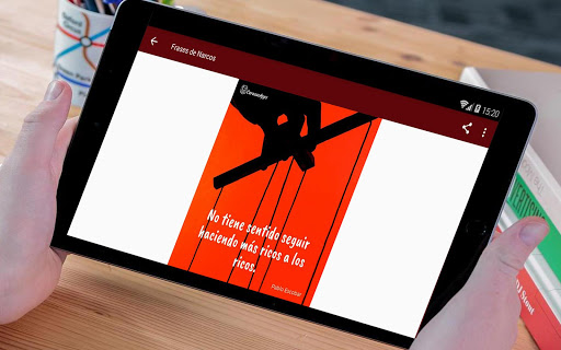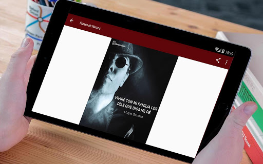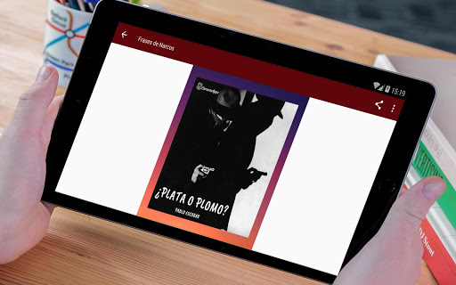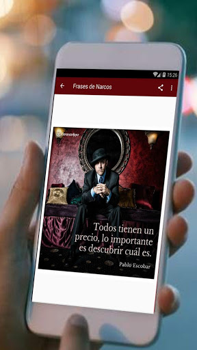 Nuestro aplicativo te ofrece una amplia galería, cargada de imágenes referentes y frases inolvidables de cada narco, las cuales semana a semana se ira actualizando, a fin que puedas realizar tu colección tal y como siempre lo quisiste. Además, podrás personalizar tus dispositivos, redes, aplicativos y perfiles, así como compartir las imágenes y frases sean de tu agrado con ese amigo o cómplice que le apasione la vida de estos personajes tan particulares.