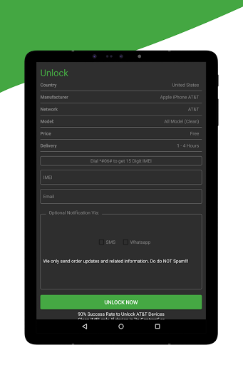 Free Factory IMEI unlock code for all makes and Android IMEI for AT&T.