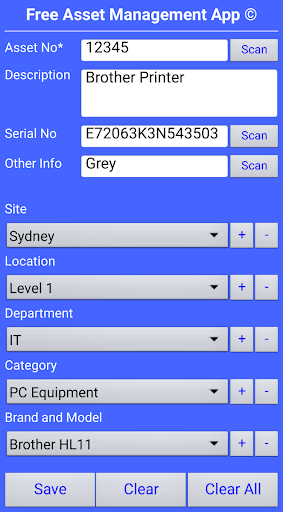 The Free Asset Management App© is a straightforward & user friendly program designed to allow users to collect information on assets, including: