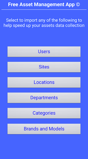 The Free Asset Management App© also allows you to import your data such as sites, locations, departments etc. to help streamline your data collection. A CSV file of the collected data can be exported and shared via compatible apps.