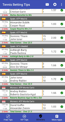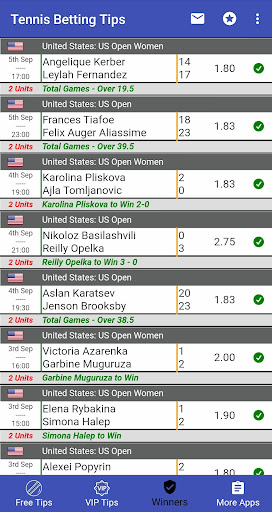 Our VIP Betting Tips - Tennis app gives you 2 to 4 free tips daily, VIP Tennis Betting tips are available in the VIP area, you can get instant access by paying a small fee with our subscription plans.